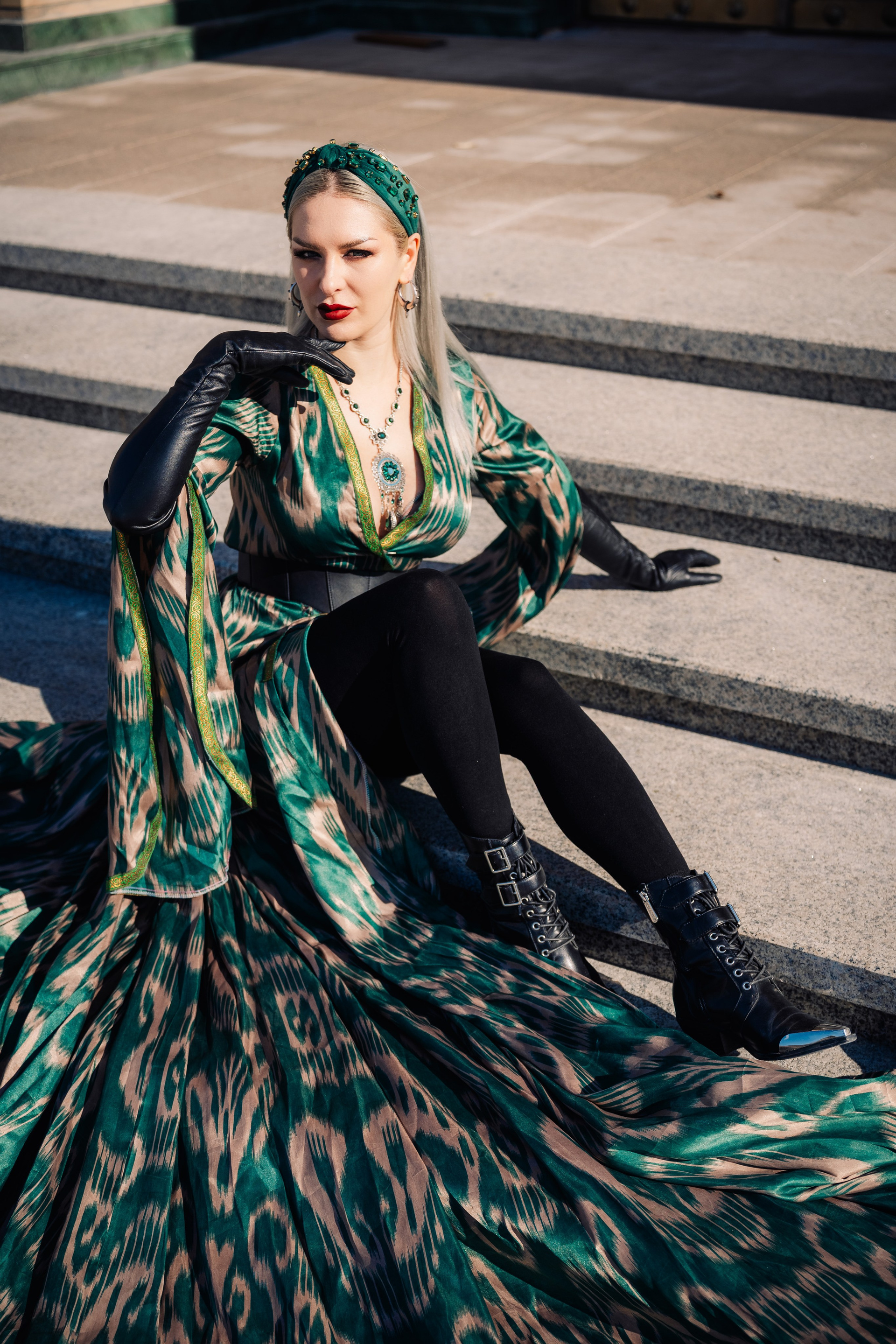 Photo shoot in a Green dress